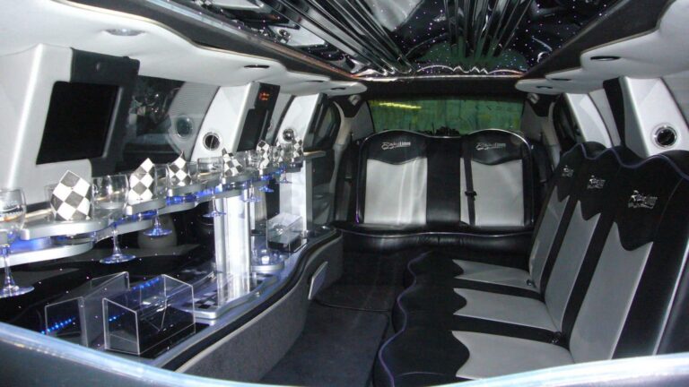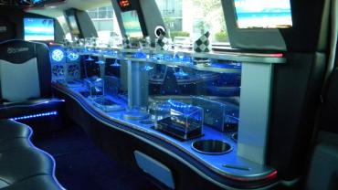 Rein ins Glück und raus in die Nacht, mit dem Luxus Chrysler von Florida Exclusiv Car. Was der Stretch Chrysler außen verspricht, hält er innen problemlos. Wer sich schon an den tollen Chromfelgen nicht satt sehen konnte, der kommt im Luxus-Innenraum so richtig auf seine Kosten. Denn auf dem Menü für das 3-Sterne-Deluxe-Interieur stehen die neuesten und chicsten Features, die es zur Zeit für Leihlimousinen gibt: Hochwertige Ledercouchen bieten Platz für bis zu 8 Personen. Die erfreuen sich an reichhaltigem Angebot in der Bar und an Entertainmentgeräten.