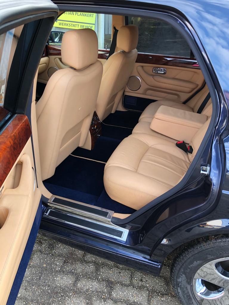 Der Bentley Arnage von Florida Exclusiv Car in Oberhausen ist ein Prachtexemplar. Die Außenlackierung in einem dunklen Königsblau gehalten, die voluminösen Reifen auf Chromfelgen montiert und Innen feinstes Connolly-Leder in hellbeige . Und unter der Haube arbeitet der altbewährte originale Rolls Royce Motor mit knapp 7 Liter Hubraum.