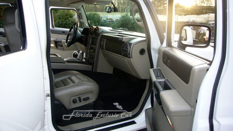 Der Gigant unter den Off-Roadern : Der Hummer H 2 mit rund 3 Tonnen „Lebendgewicht“ und Dein persönlichen Chauffeur warten auf Dich. Hier die Strassenversion in weiß. Hoch über den Köpfen der anderen Verkehrsteilnehmer, beeindruckt man die anderen Autofahrer mit dem riesigen Gefährt, mit dem man gelassen über unsere Strassen fährt.
