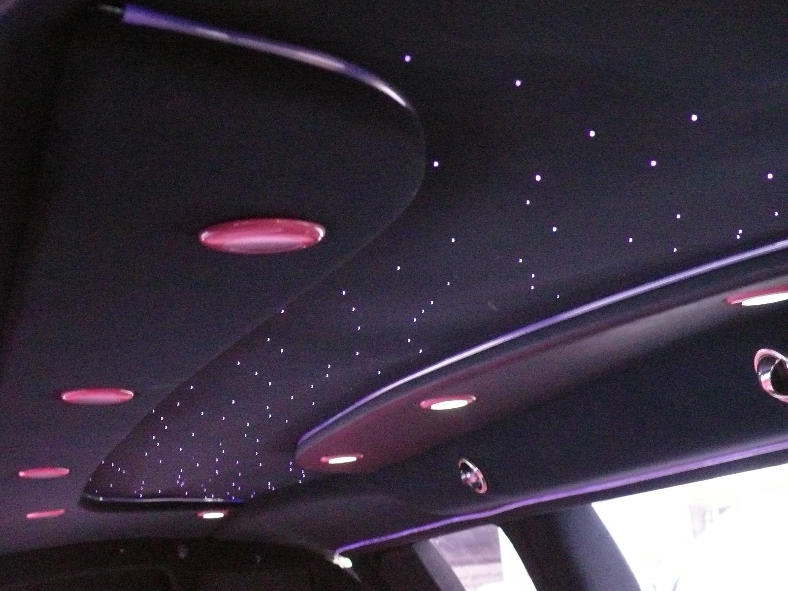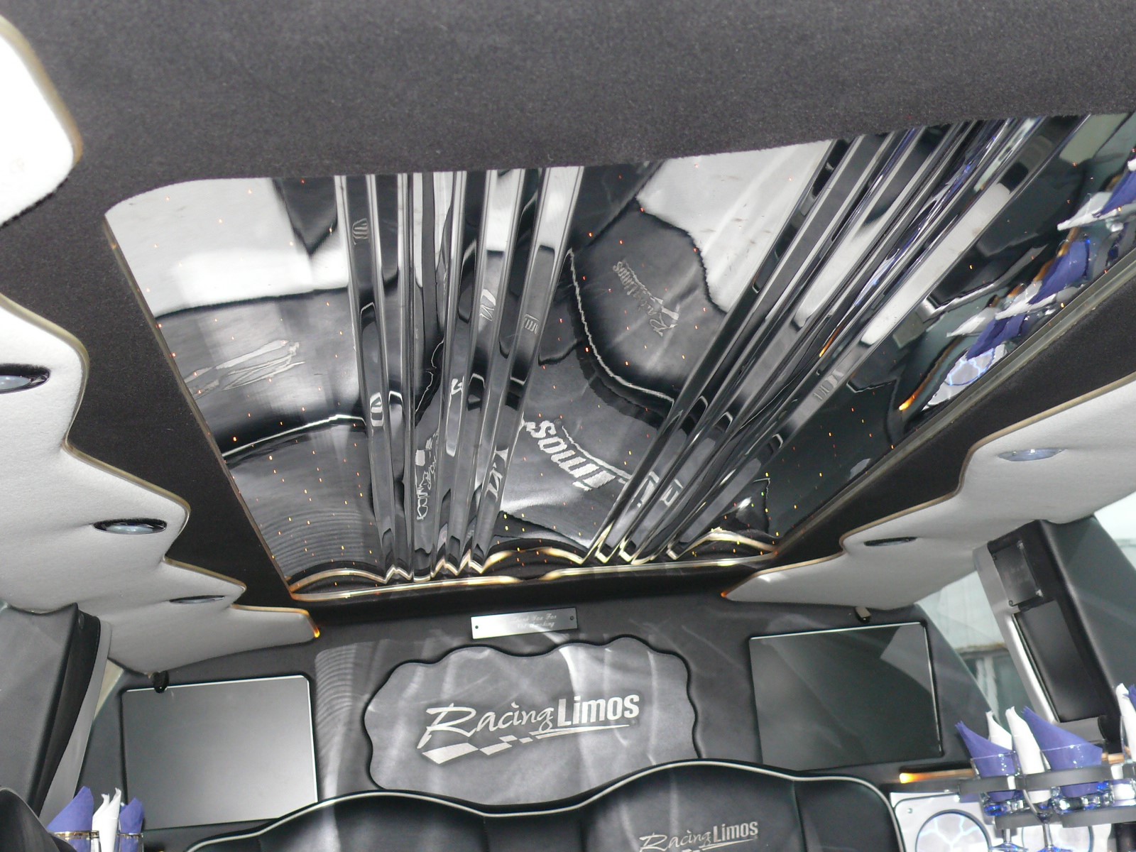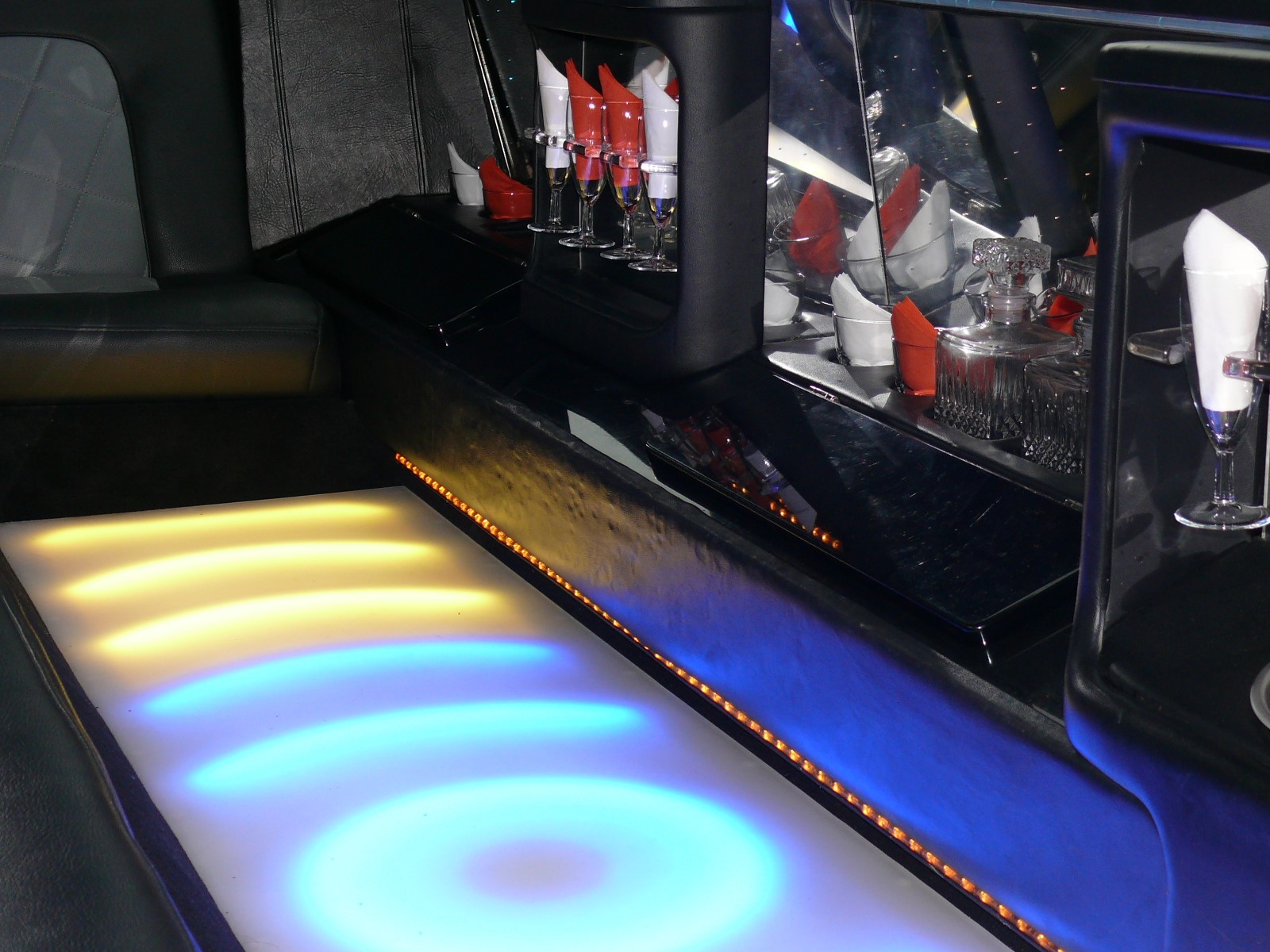 Außen extrem markant durch die schwarze Glanzlackierung mit einer speziellen Glitzeroptik, die dem Wagen eine besondere extravagante Note verleiht und chanchiert in diversen Farben Auffällig auch die 22 Zoll-Bereifung und die Lambodoors. Innen läßt dieser Dodge Charger von Florida Exclusiv Car an luxuriösen Interieur keine Wünsche offen. Im Fond des Fahrzeuges finden 8 Personen reichlich Platz auf den Ledersitzen. Die Mehrzonenklimatisierung sorgt auf Ihrer coolen Party, das es immer schön angenehm kühl bleibt, das Multimedia-System mit diversen Flachbildschirmen, Radio, CD- und DVD-Player, sowie ein Premium-Soundsystem lassen jede Art von Musik zum Erlebnis werden. Die riesige Spiegeldecke mit diversen Lichteffekten , wie zB. Sternenhimmel, Neonoptik, Lasershow, Strobelights und die endlos wirkende lange Bar lassen die Fahrt zum Erlebnis werden. Buchbar zB. als