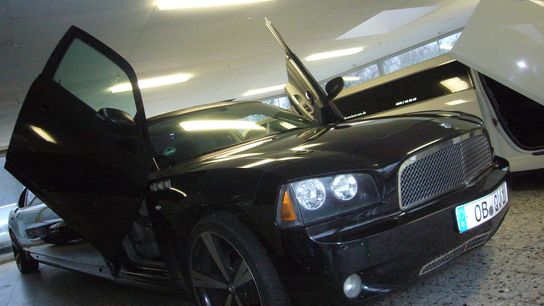 Steigen Sie ein in eines der größten Erlebnisse, die eine Autofahrt bieten kann. Denn ganz groß ist der Innenraum gleich in zweierlei Hinsicht: Stretch-Ausbau plus Luxus-Ausstattung. Der Stretchausbau des Charger sorgt dafür, dass man im Inneren des Dodge den Blick weit schweifen lassen kann. Die großartige Aussicht macht Lust auf eine unvergessliche Partyfahrt und bietet alles, was das Feierherz begehrt. Die großartige Aussicht macht Lust auf eine unvergessliche Partyfahrt und bietet alles, was das Feierherz begehrt. Wie zum Beispiel die luxuriöse Party-Ausstattung des Charger. Hoch modern und höchstgradig chic ist der Innenraum gestaltet und bietet neben edlen Ledercouchen für 8 Personen und hochwertiger Innenverkleidung auch alle technischen Finessen auf neuestem Stand. Neben der Bar vergrößern CD, DVD und das hochwertige Soundsystem den ohnehin schon großartigen Feierspaß.