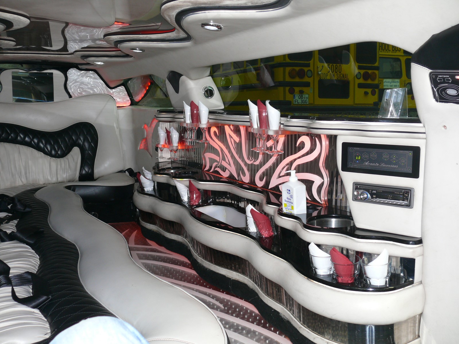Hier könnt Ihr mit bis zu 18 Personen feiern. Wie unsere anderen Partybusse auch, hat dieser Us-Schoolbus auch eine super Musikanlage installiert, wo Ihr auch eure eigene Musik abspielen könnt. Ob CD, DVD, USB-Stick, Bluetooth, alles ist möglich.