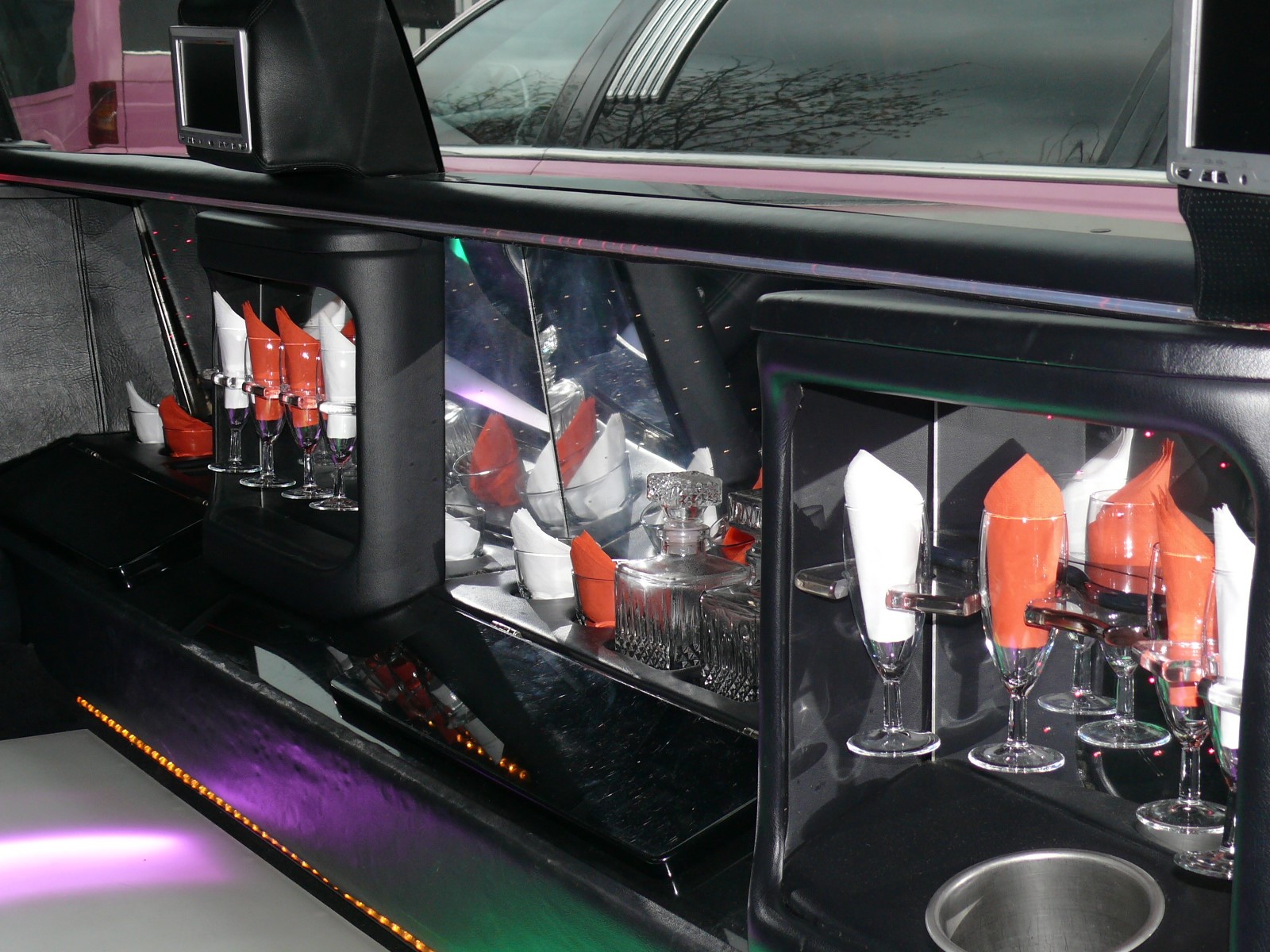 Wenn Sie nicht schon der pure Anblick der Luxuskarosse überzeugt hat, dann sicherlich ein Blick in die exklusive Sonderausstattung. Hier bleibt fast kein Wunsch mehr offen, wenn die Licoln-Türen zugehen: Loungesofas für bis zu 8 Personen, Klimaanlage, Minibar, Entertainment, Spiegeldecke und vieles mehr sorgen dafür, das im Lincoln die Laune schnell auf Hochtouren kommt. Komplett verkleidete Decke, Wände und Sitzmöglichkeiten, edle Mahagoni-Armaturen und komfortable Sitzgelegenheiten machen die Fahrt zum Hochgenuss. Für die Kurzweil sorgen Minibar, DVD, CD oder TV. Die Lincoln Town Car Stretch Limousine – Alles, was das Herz begehrt und mehr.