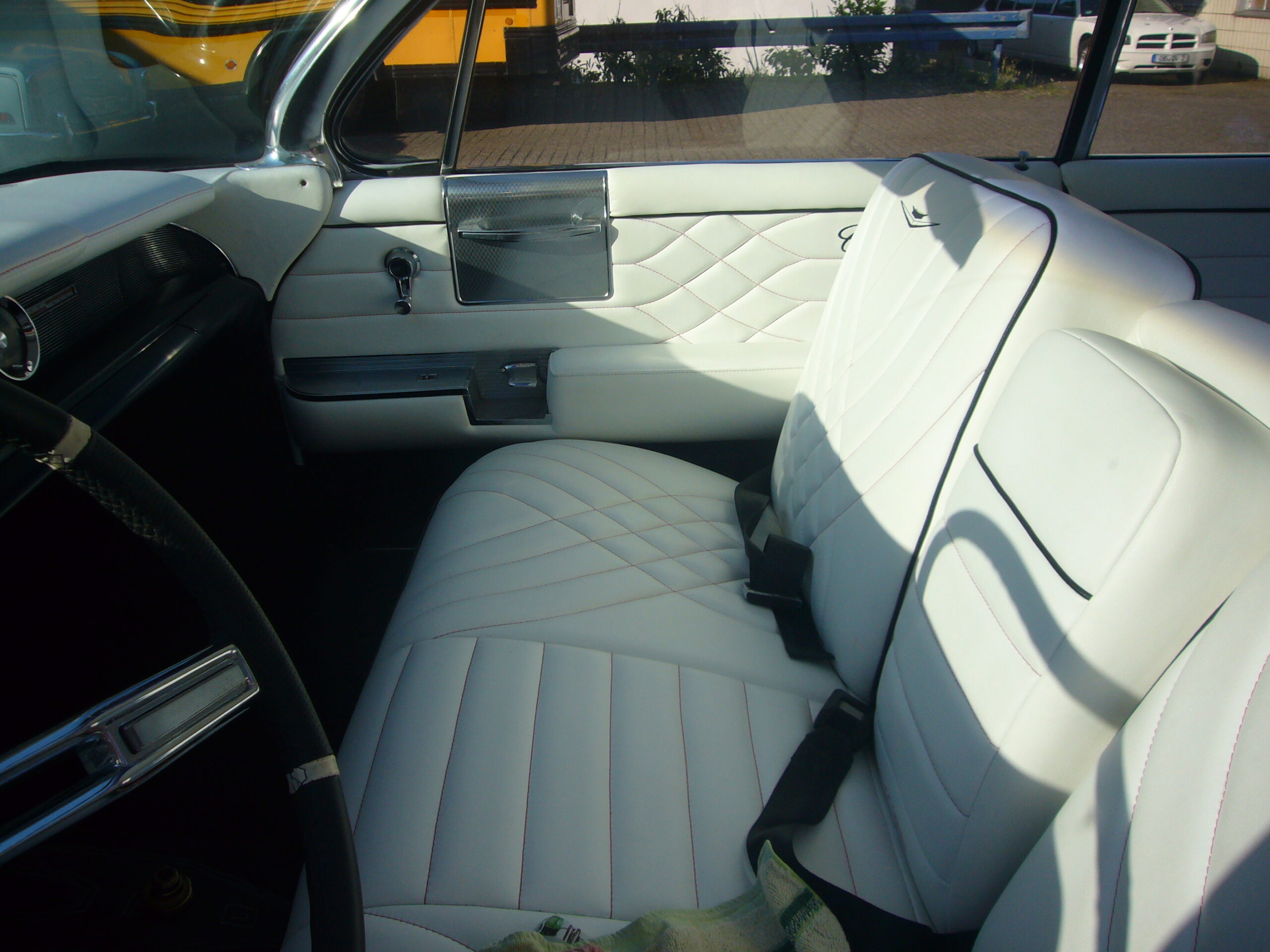 Der Caddilac DeVille Convertible kann sich im wahrsten Sinne des Wortes sehen lassen. Er beeindruckt mit farblich abgestimmter Ausstattung, Ledersitzen und klassischen Armaturen. Durch sein offenes Verdeck zeigt er, was er hat – und wer mit ihm fährt. Auf den hochwertigen Ledersitzen wird jede Autofahrt zum Hochgenuss.Nehmen Sie Platz auf den wunderschön gelungen stilechten rot-weißen Sitzen und lassen Sie Sich wie ein Hollywood-Star von uns chauffieren. Die Armaturen sind stimmig und verkörpern den Charme der 60er Jahre. Und als wäre das nicht genug, hat der Cadillac DeVille Convertible ein elektro-hydraulisch bedienbares Softtop zum Auf- und Zuklappen des Daches.